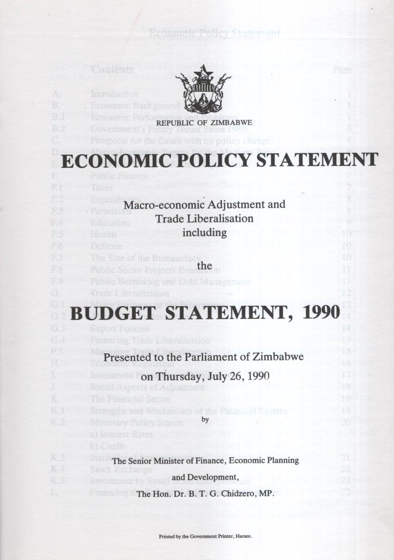 Home/General Books/Economic Policy Statement: Macro-economic Adjustment and Trade Liberalisation including the Budget Statement, 1990 - Chidzero, B. T. G.