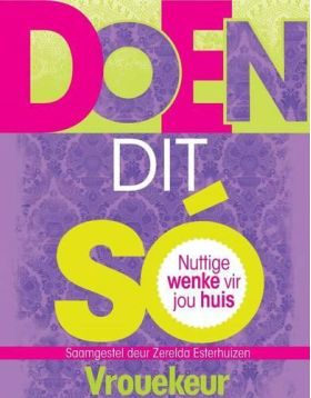 Daar's wenke vir jou kombuis sitkamer kamer en badkamer en ook raad oor hoe om dinge vinniger te kook beter te bak en dies meer. Van ons lesers se wenwenke is ook in die boek vervat. En die helde van die boek? Suurlemoen asyn en koeksoda! Jy kan feitlik enigiets daarmee skoonmaak.